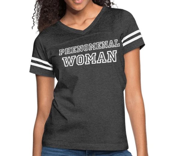 Short Sleeve T-Shirt “Phenomenal Woman” Graphic Vintage Sport Design In Vintage Smoke White