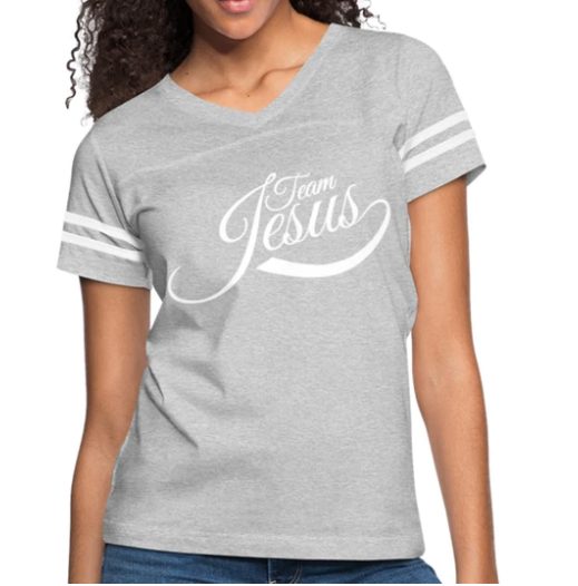 Short Sleeve T-Shirt “Team Jesus ” Graphic Vintage Sport Design In Heather Gray White