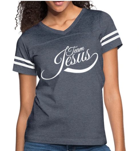 Short Sleeve T-Shirt “Team Jesus ” Graphic Vintage Sport Design In Vintage Navy White