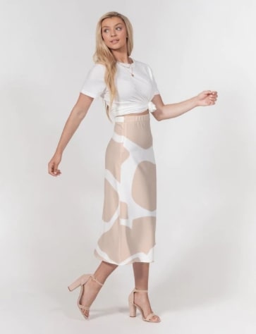 Skirt A-Line High-Waisted Peach & White Pattern