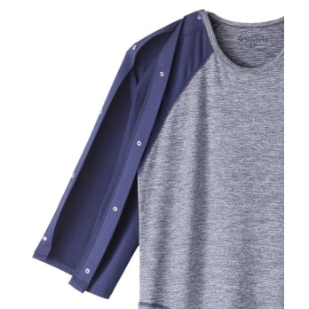 Men’s Recovery Nightgown is ideal for self or assisted dressing. This adaptive nightgown features discrete snaps along the sleeve and side seams for easy access while keeping your dignity. This nightgown has side pockets and it provides additional comfort with this super-soft knit polyester-spandex fabrication.