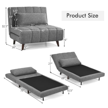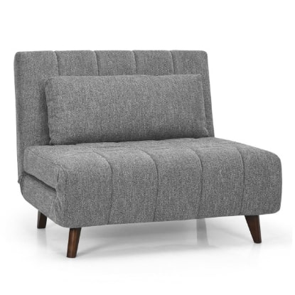 Sofa Chair 3-Position Convertible Bed With Back Pillow In Grey