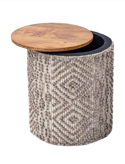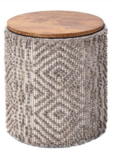 The Handwoven Mocha Pattern Storage Side Table features a versatile white braided pattern wrapped around the base of this side table that also functions as easy storage. A removable wood tabletop allows for ample storage space inside the table. Great for storing throws or kids toys! Can also be used as a hamper or stool.