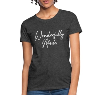 T-Shirt Classic Heather Black “Wonderfully Made” Graphic