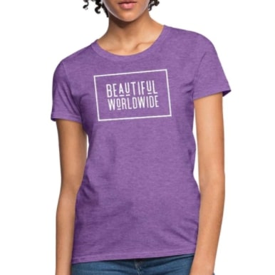 T-Shirt Crew Neck Heather Purple Boxed “Beautiful World” Graphic