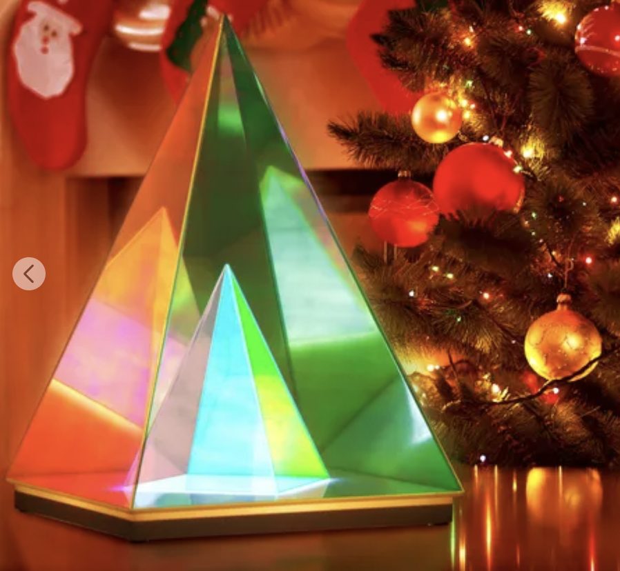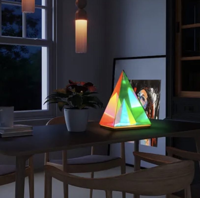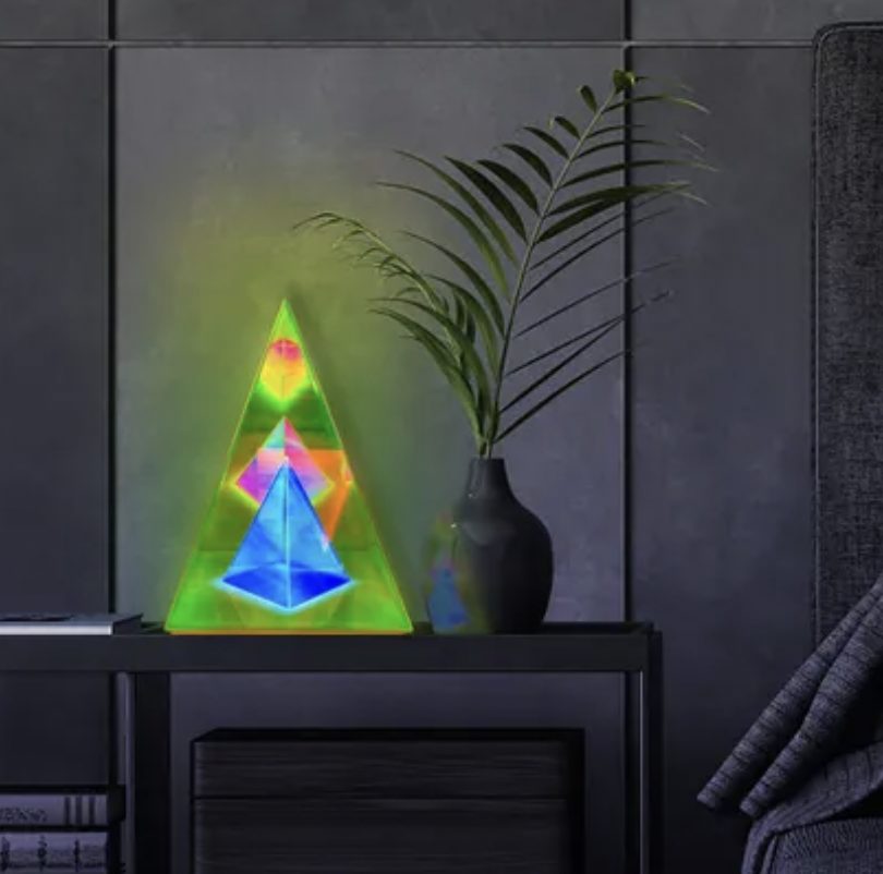 The Trigon Pyramid Lamp is a unique and contemporary art sculpture for your space that will serve as a real talking point and an eye-catching centerpiece.