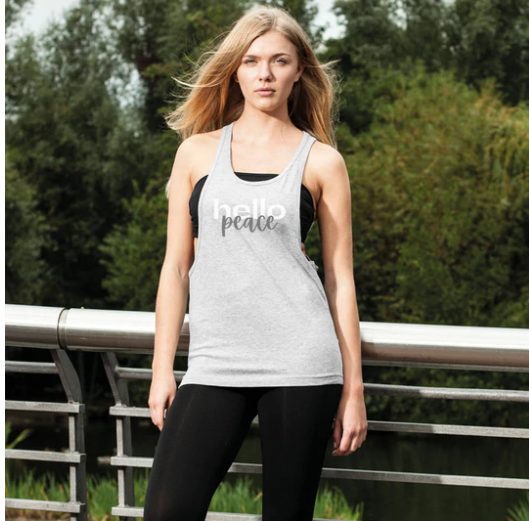 Tank Top Flowy Peach Marble “Hello Peace ” Women s ‘Sportswear Graphic In Light Grey