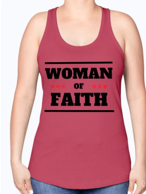 Tank Top Flowy Racerback “Women Of Faith “Graphic In Red