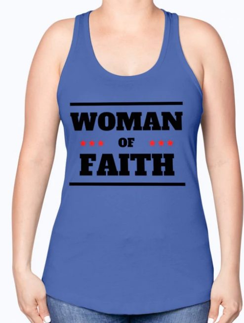 Tank Top Flowy Racerback “Women Of Faith “Graphic In Royal