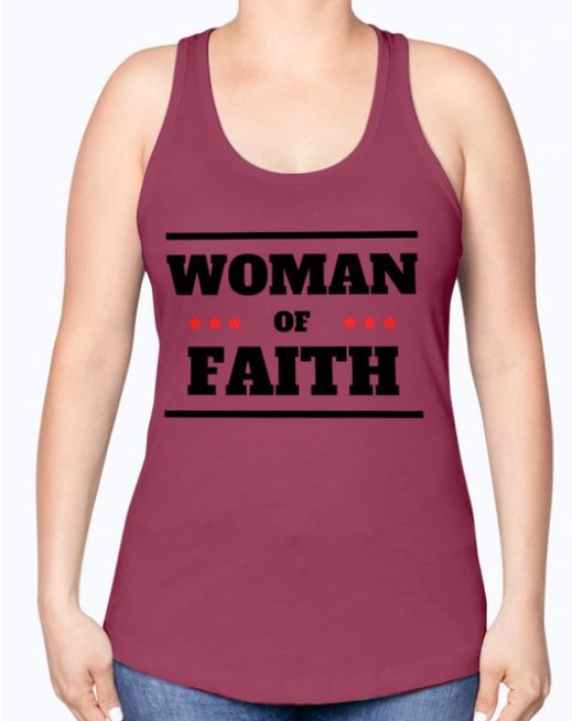 Tank Top Flowy Racerback “Women Of Faith “Graphic In Scarlet