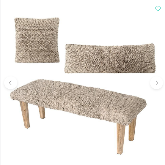 Handwoven by skilled artisans in the Haryana state, the Handwoven Textured Taupe Pillow matches our bench and is both comfortable and distinctive.
