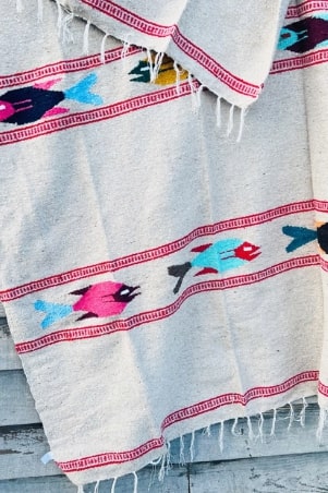 Throw Blanket Mexican Serape El Pez In Tan