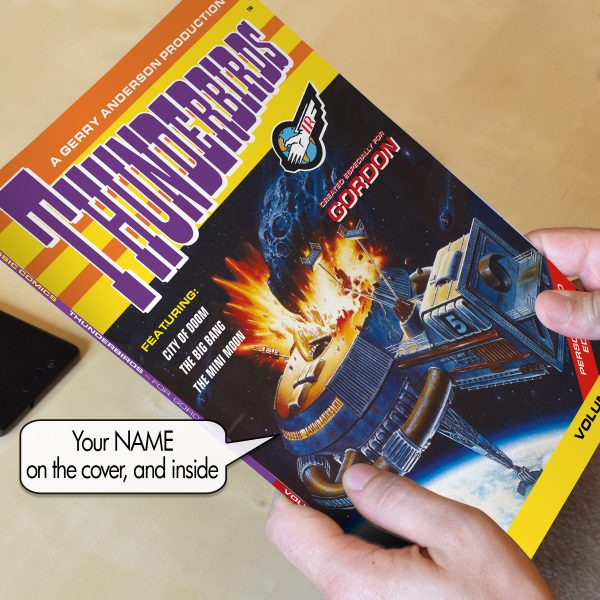 A series of five volumes which bring together the Thunderbirds comic strips from the 1960s and 70s, and are perfect for fans of the classic show. Featuring brilliant comic strip stories like The Earthquake Maker, Brains is Dead and The Hawaiian Lobster Menace, each personalized version is for true Thunderbirds fans. Each page features the recipient’s name at the top, and it’s also included on the cover. You can further personalize this book by adding a message to the recipient on the opening page