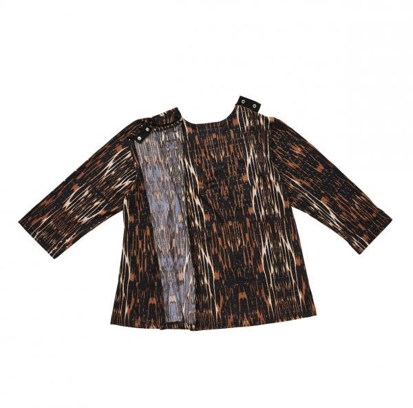 Top Assisted Dressing 3/4 Sleeve Brown Abstract Animal Print Shirred Blouse