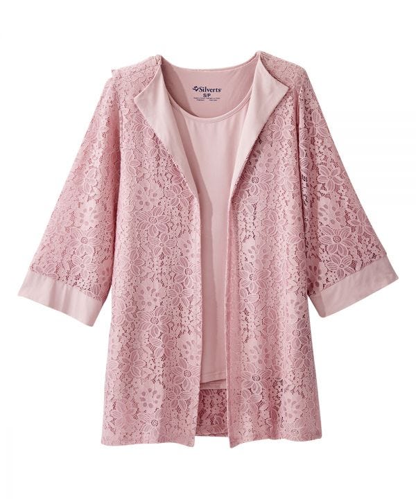 Top Assisted Dressing Lace Blazer Twofer Dusty Pink Blouse