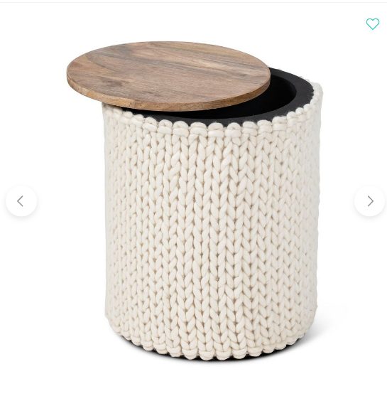 The Handwoven Braided White Storage Side Table features a versatile white braided pattern wrapped around the base of this side table that also functions as easy storage. A removable wood tabletop allows for ample storage space inside the table. Great for storing throws or kids toys! Can also be used as a hamper or stool