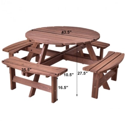 This traditional 8-seat wooden bench round table can entertain, relax and enjoy dining.